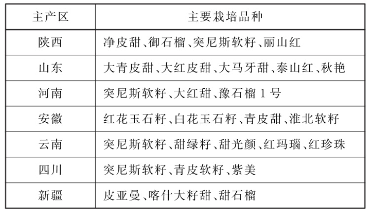 林业行业标准《石榴》(LY/T 2135-2024 )中列出的石榴主产区和主要栽培品种