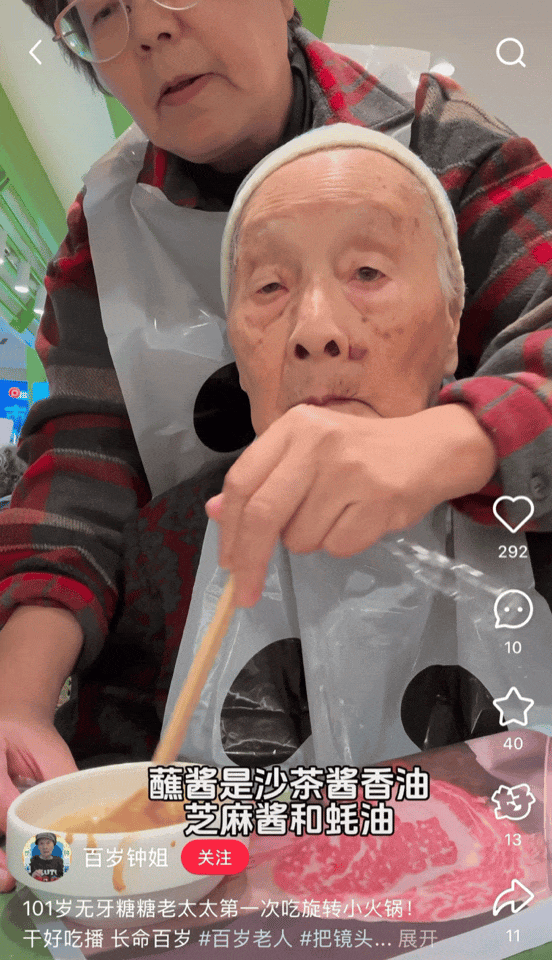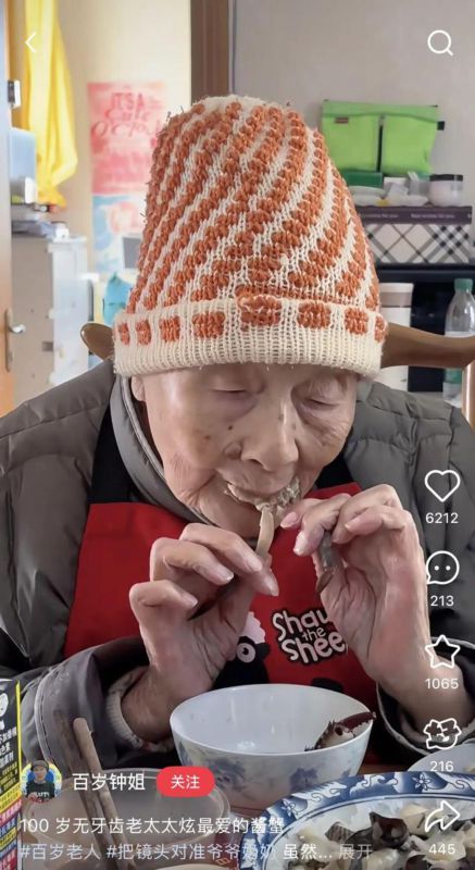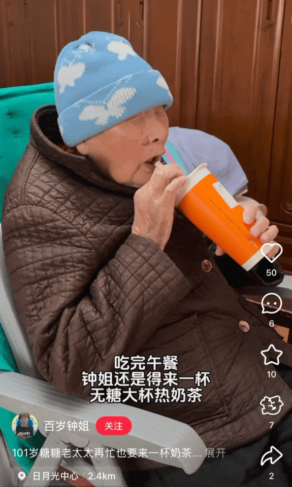 上海硬核奶奶!100岁高龄爱喝奶茶、玩iPad、无牙也炫吃酱蟹