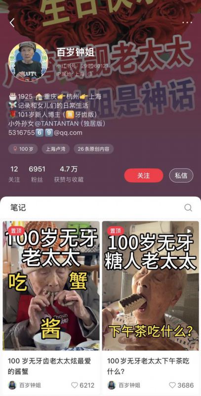 现在“百岁钟姐”账号已经有