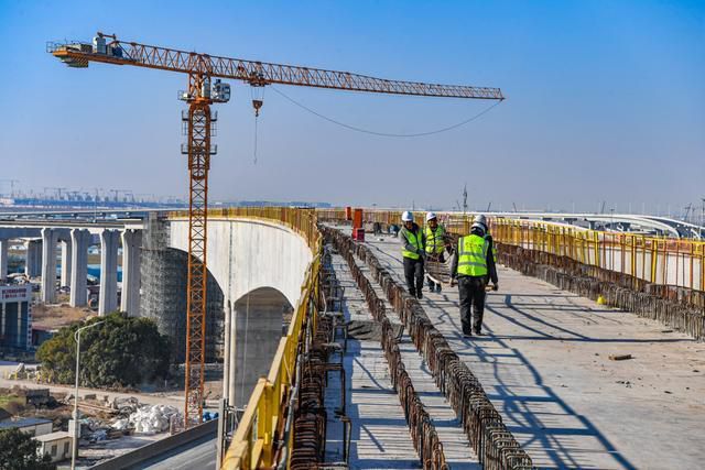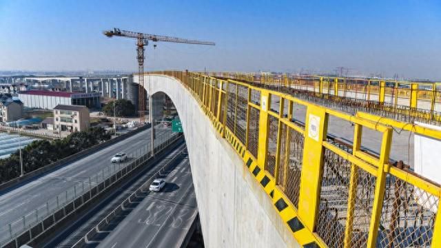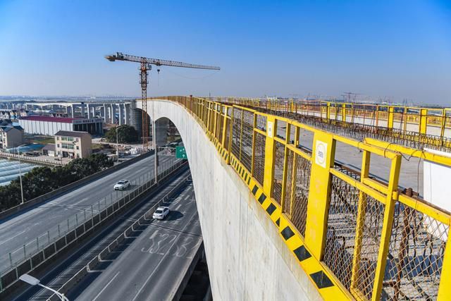 宏润建设集团有限公司南汇支线(两港市域铁路)工程NHSG-10标生产经理何舟向记者介绍:“合龙之后,施工团队这几天正在进行收尾工作,并抓紧时间完成跨两港公路主线边跨现浇箱梁支模架搭设工作。”
