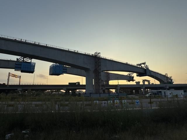 南汇支线10标跨两港大道右线158米连续梁顺利合龙