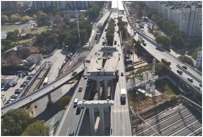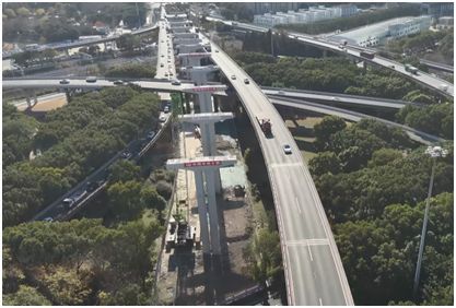 目前,保通道路完成约15km,主线桥梁下部结构施工全面铺开。其中,外环桃浦路横向地面桥新建完成、莘庄立交节点上跨国铁和地铁桥梁下部结构完成。