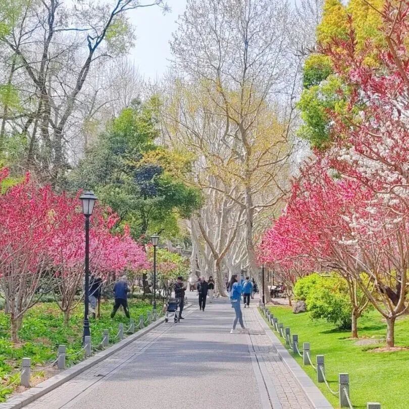 推荐赏花地:长宁外环生态绿道、中山公园、上海动物园、哈密公园、华山绿地